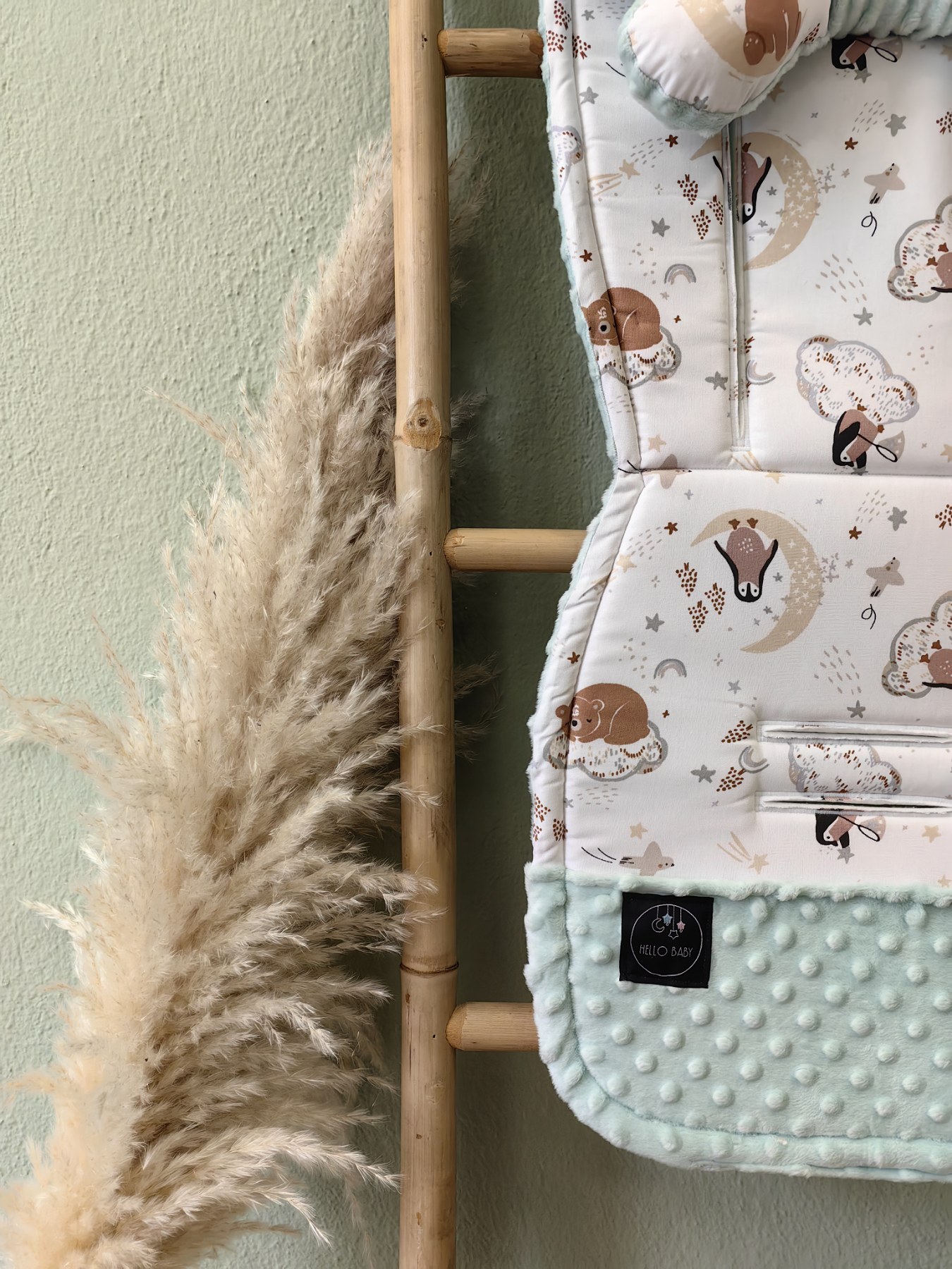 Μπορείτε να το συνδυάσετε με το μαξιλαράκι αυχένα και τα προστατευτικά ζώνης σε αντίστοιχο σχέδιο.