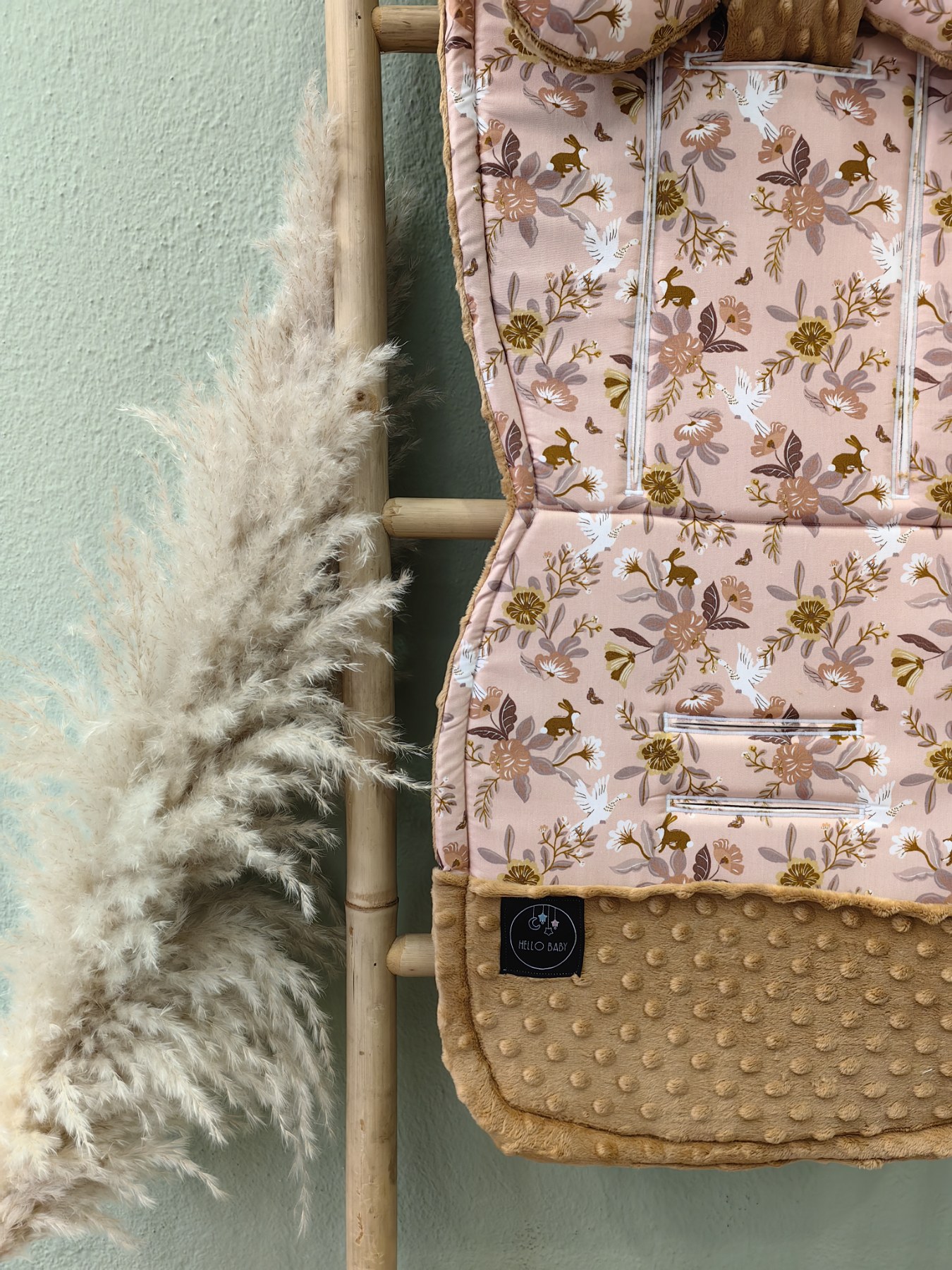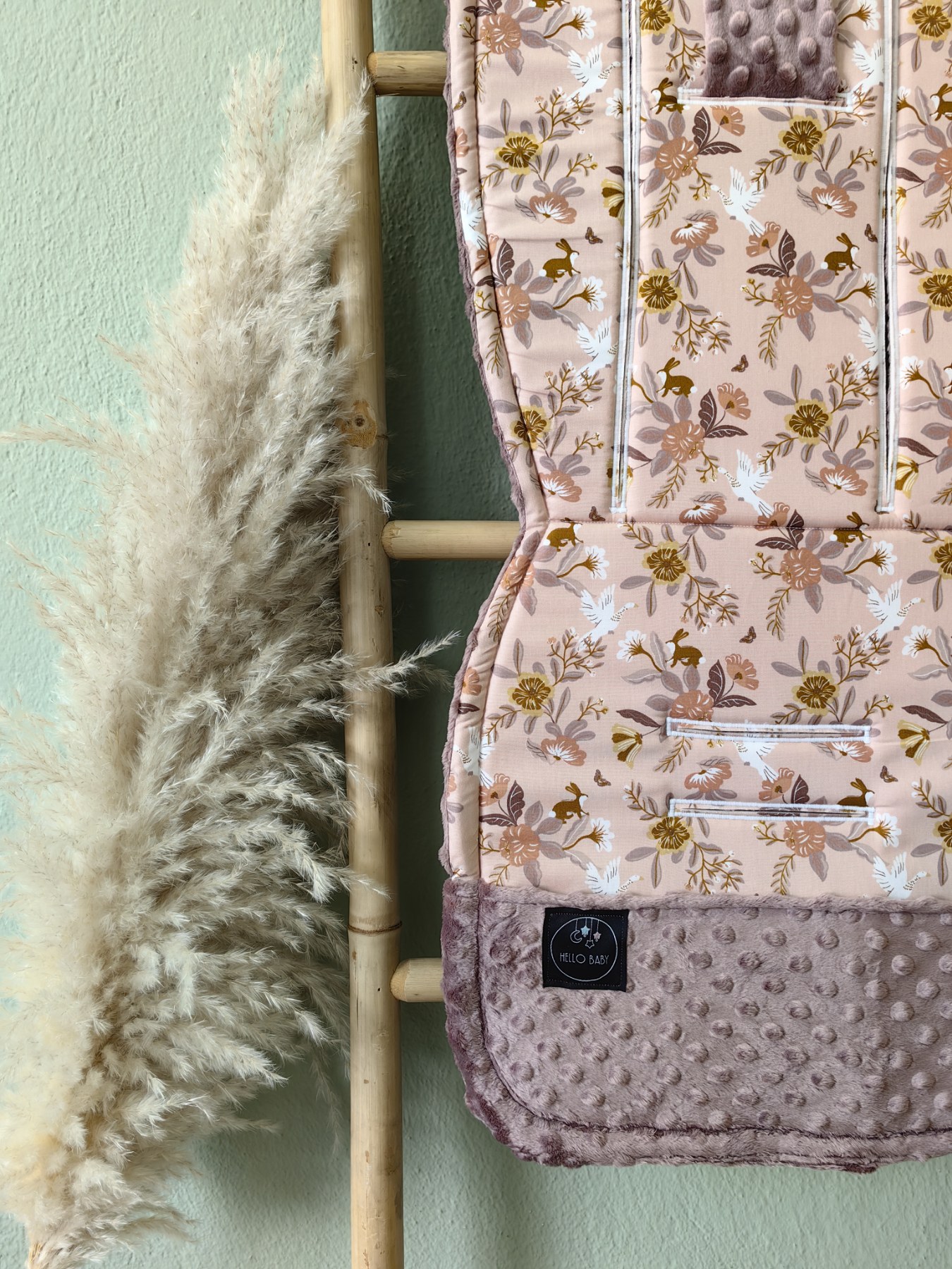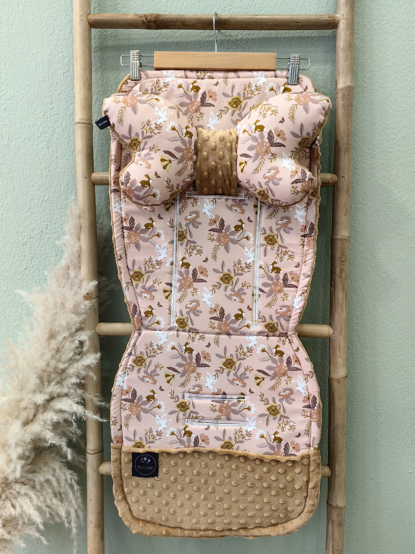 Μπορεί να χρησιμοποιηθεί χειμώνα καλοκαίρι καθώς είναι διπλής όψης. Κατασκευασμένο με βαμβακερό ύφασμα από την μια πλευρά και βελούδινο minky από την άλλη, ενώ στο πίσω μέρος διαθέτει λάστιχο για να εφαρμόζει απόλυτα σε κάθε καρότσι .
