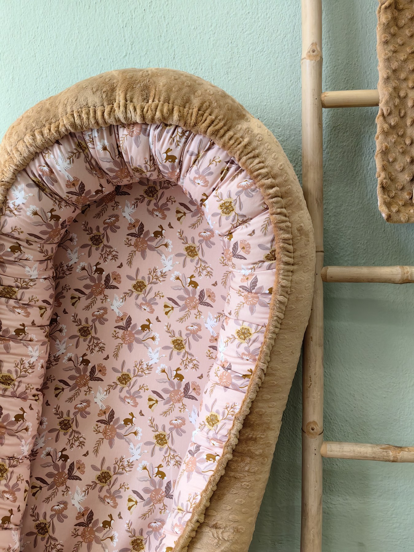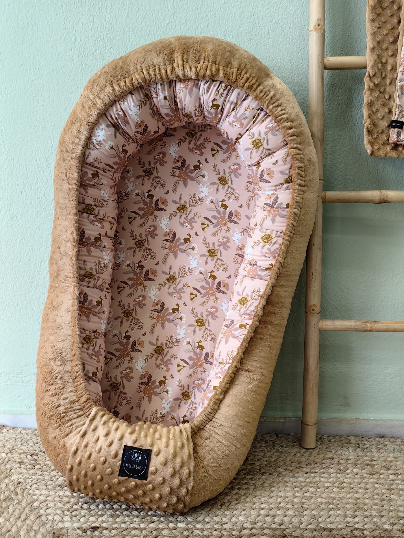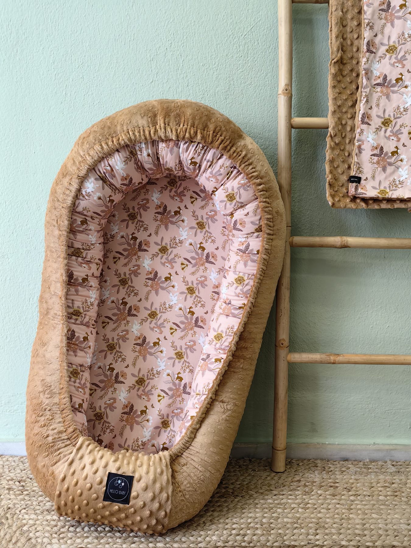 Η φωλιά είναι διπλής όψης, με τη μία πλευρά από 100% βαμβακερό ύφασμα και την άλλη από απαλό βελούδινο minky, ιδανικό συνδυασμό για όλες τις εποχές.